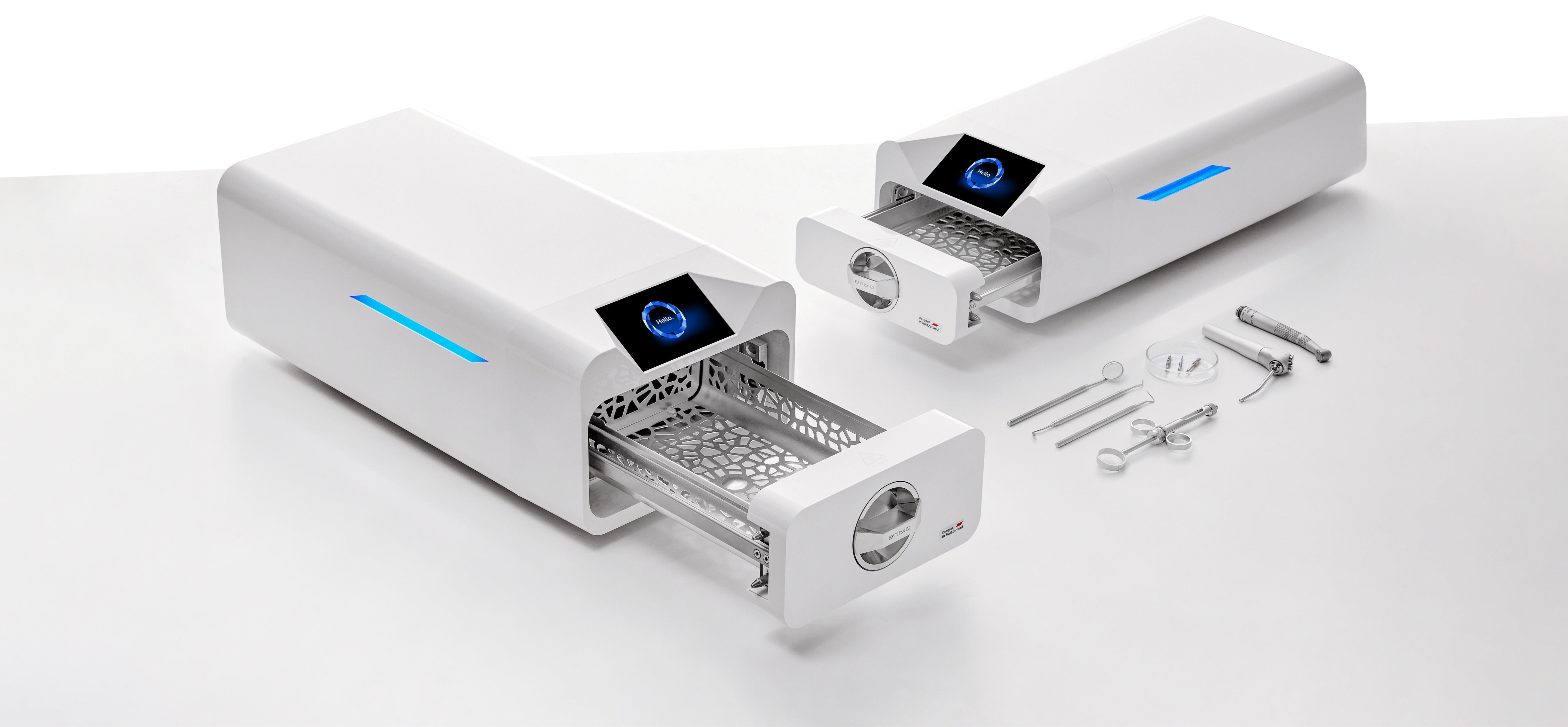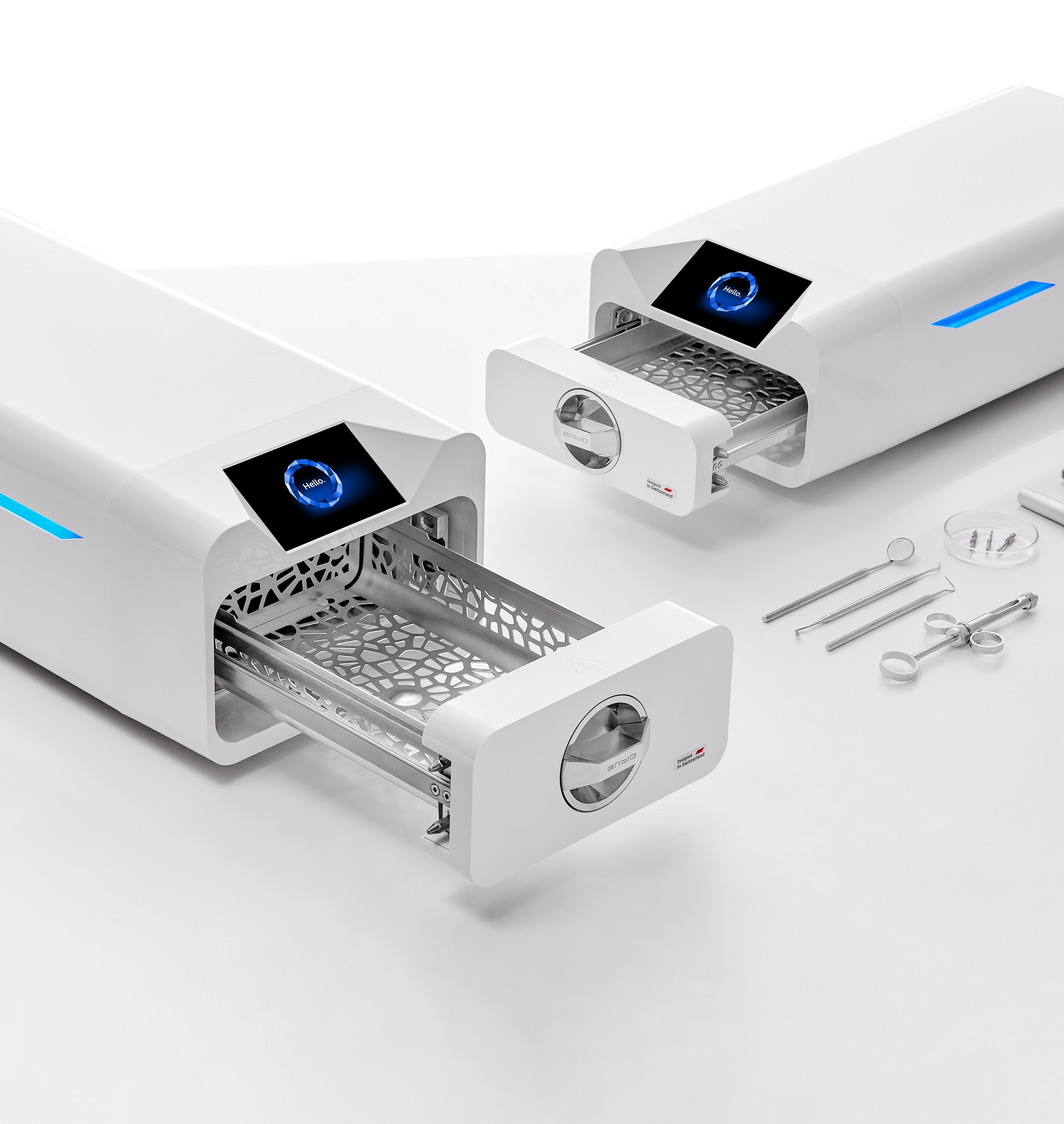 Esterilização completa em apenas 7 minutos sem bolsas, proporcionando rapidez e eficiência. Perfeito para uma rápida recuperação de instrumentos num dispositivo elegante e compacto.